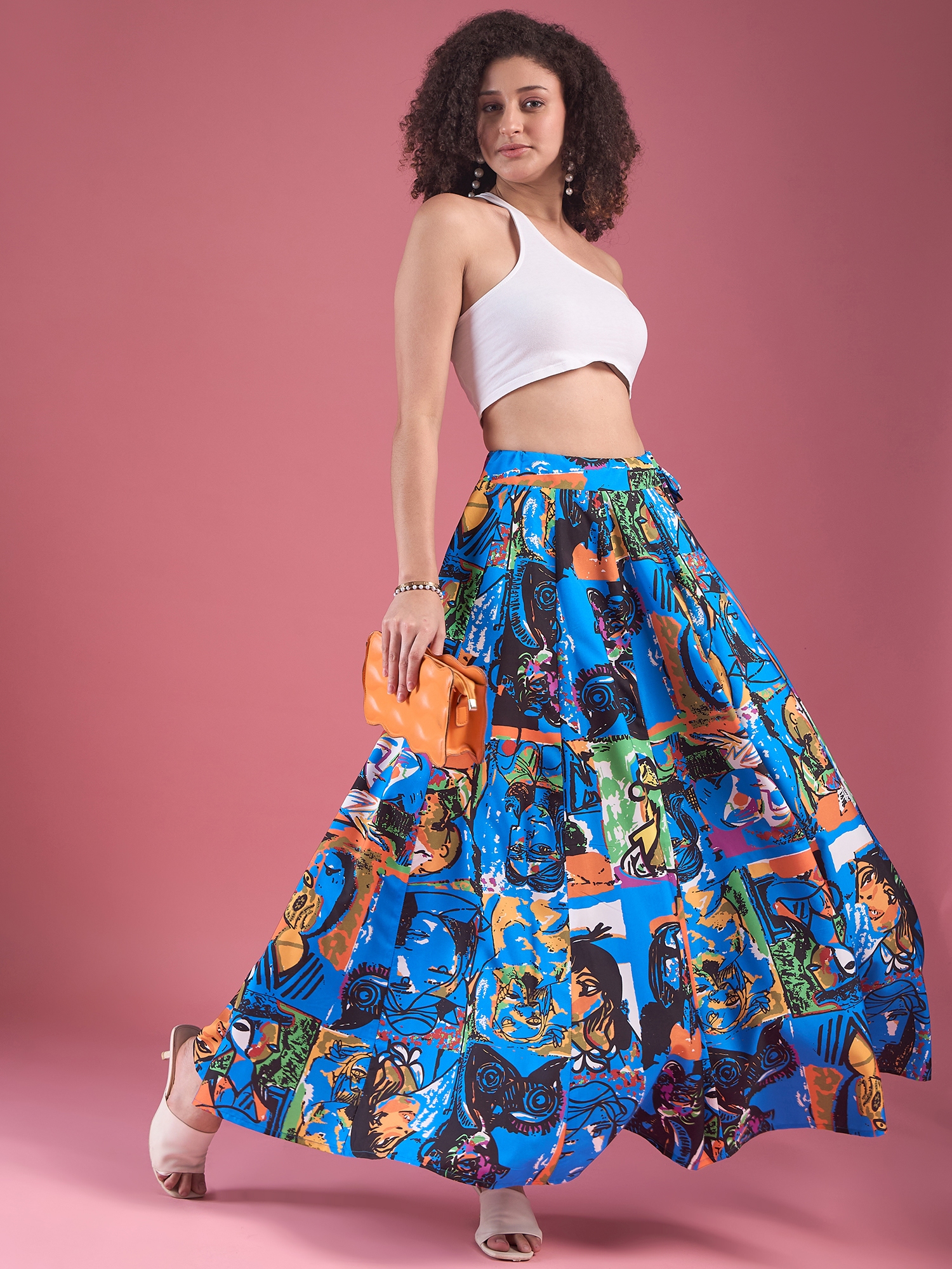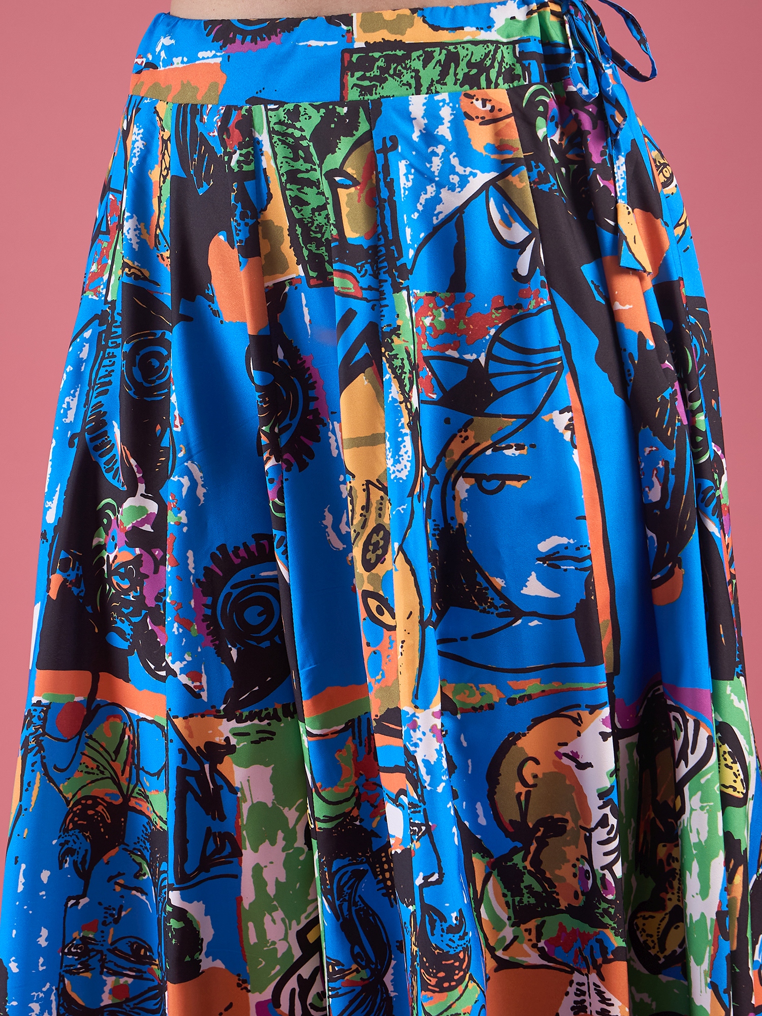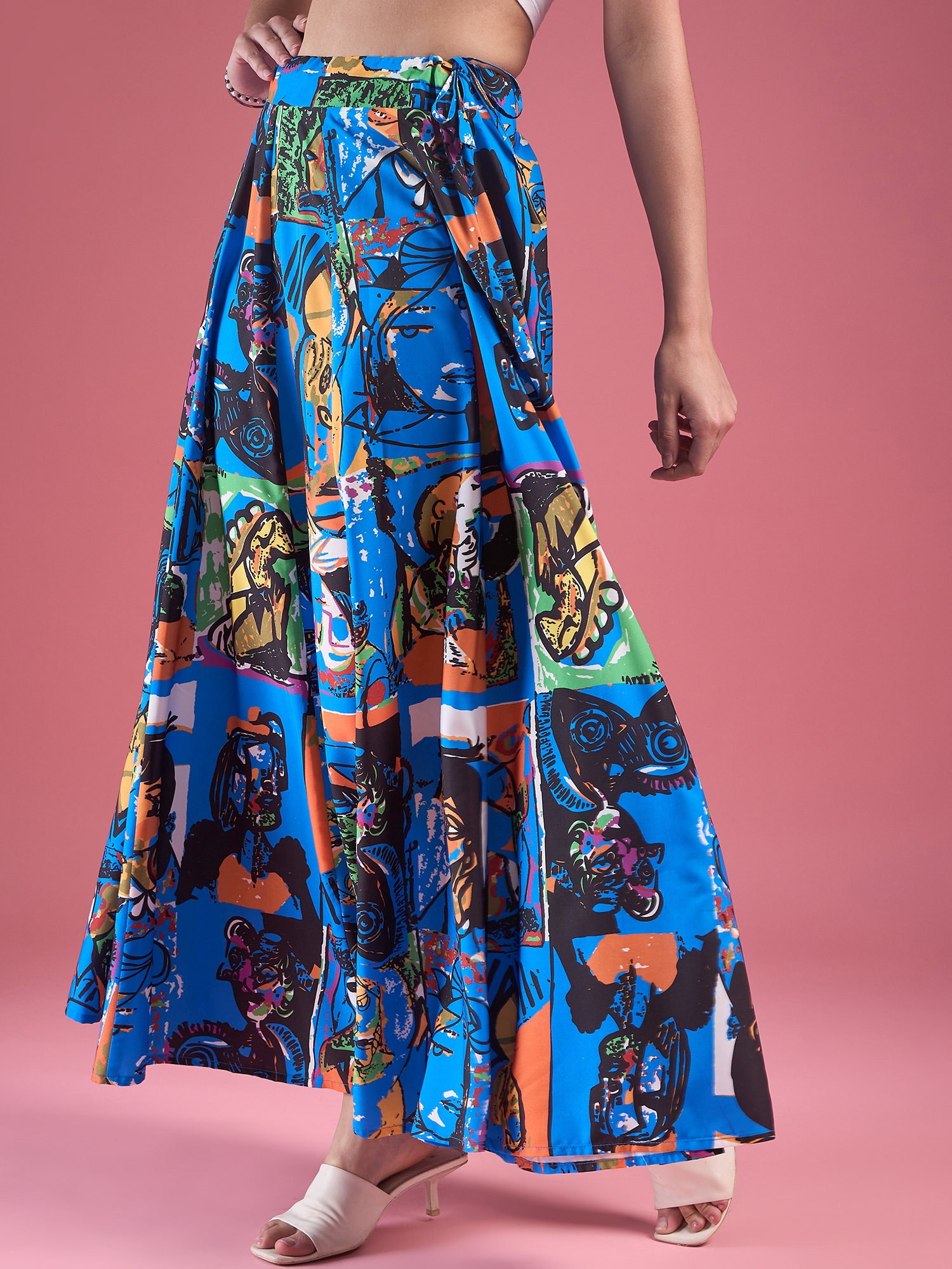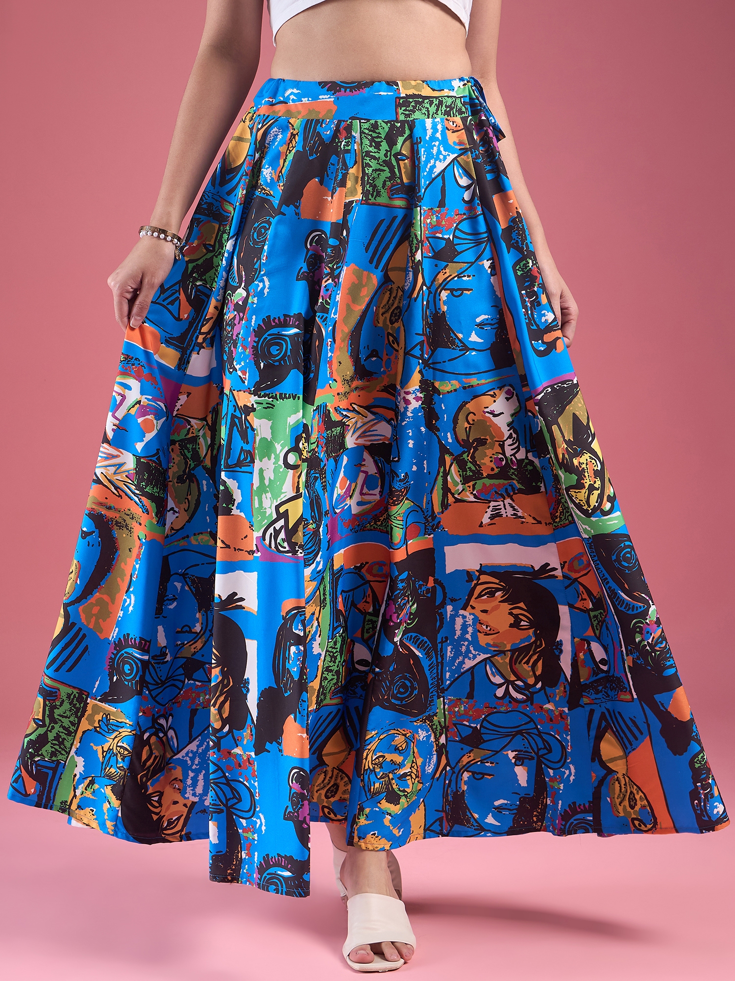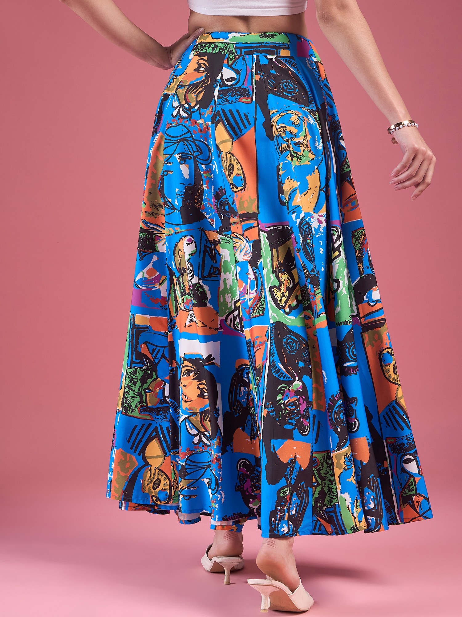 Deewa Blue Vibrant Abstract Print Maxi Skirt