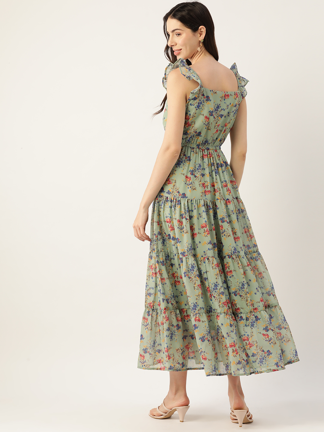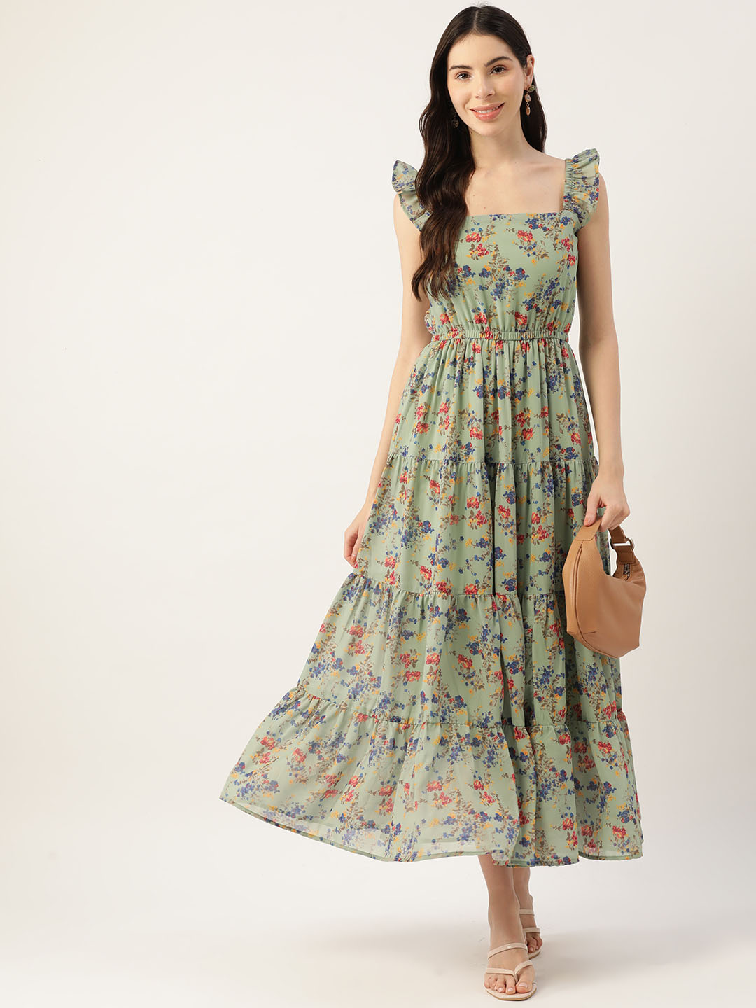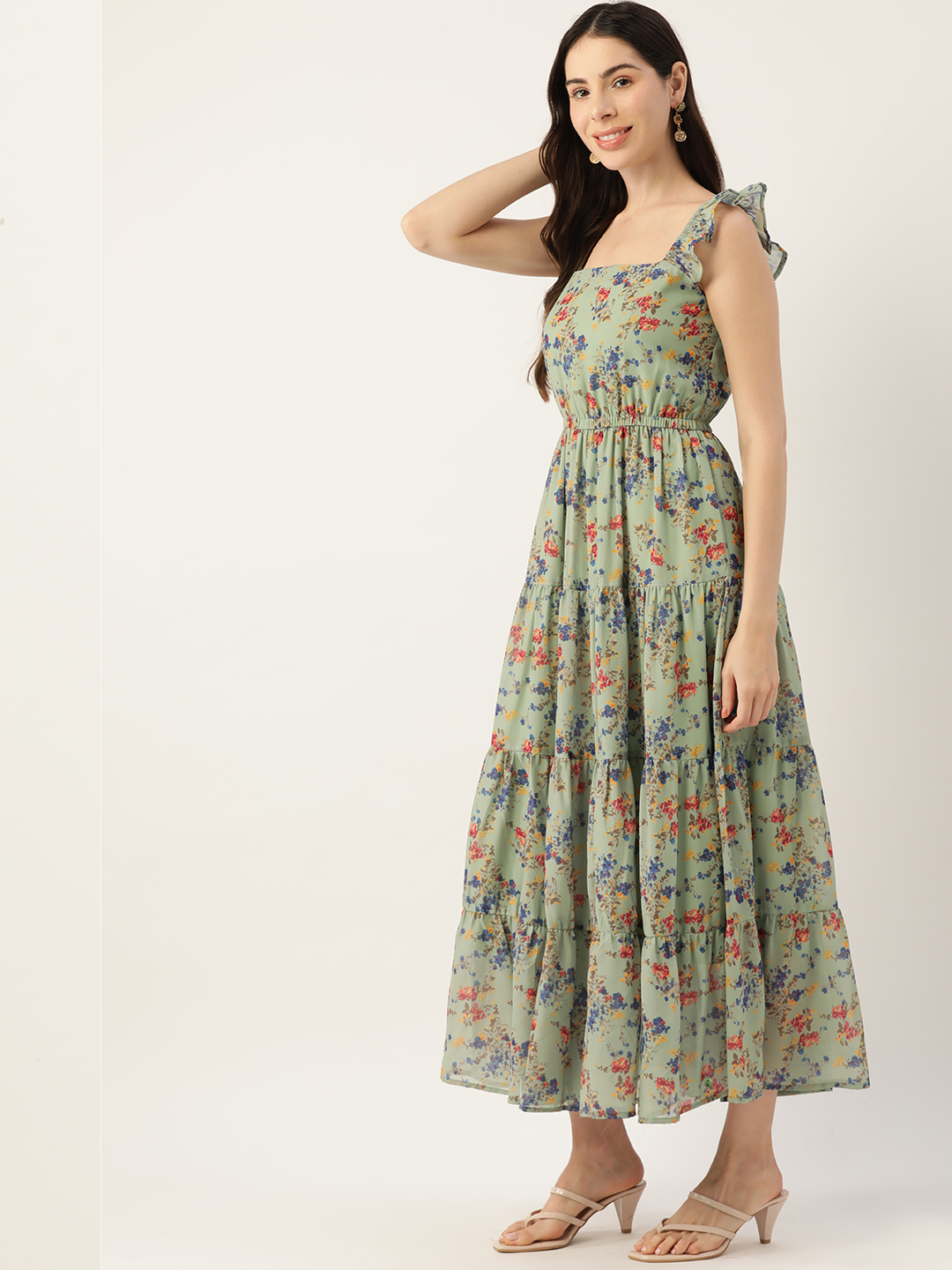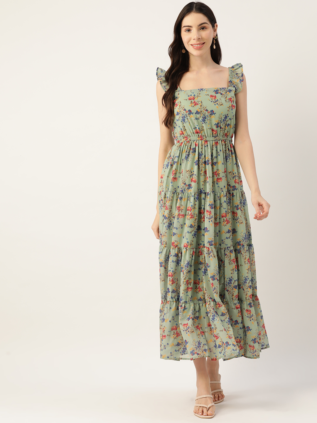 Be the first to review “Deewa Elegant Maroon Floral Printed Square Neck Empire Maxi Dress”