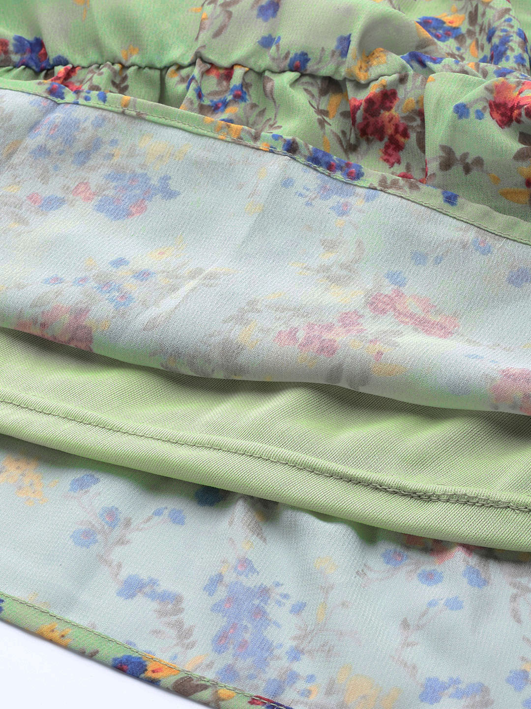 Deewa Elegant Maroon Floral Printed Square Neck Empire Maxi Dress