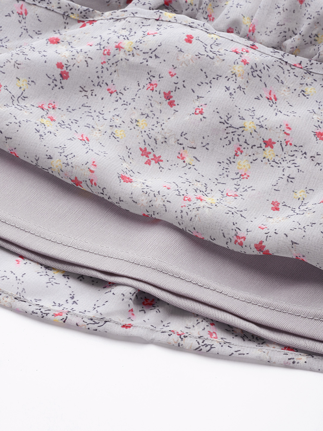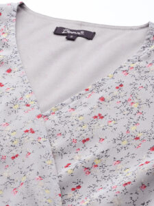 Color: Grey Blue with pink floral print