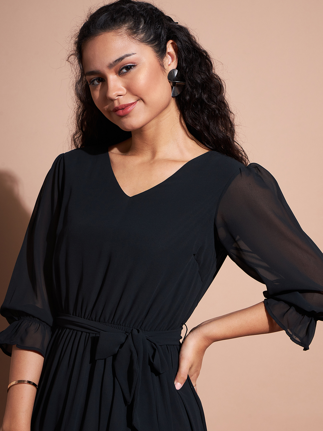 Be the first to review “Deewa Women Black Chic Asymmetrical Pleated Midi Dress”