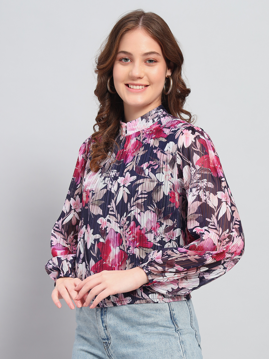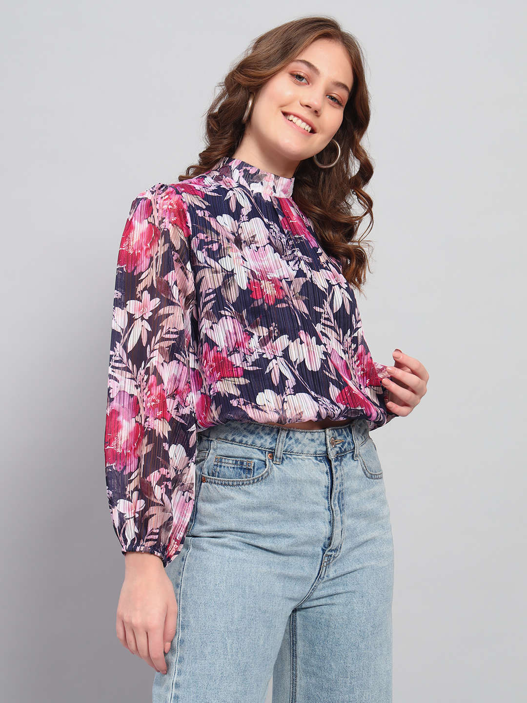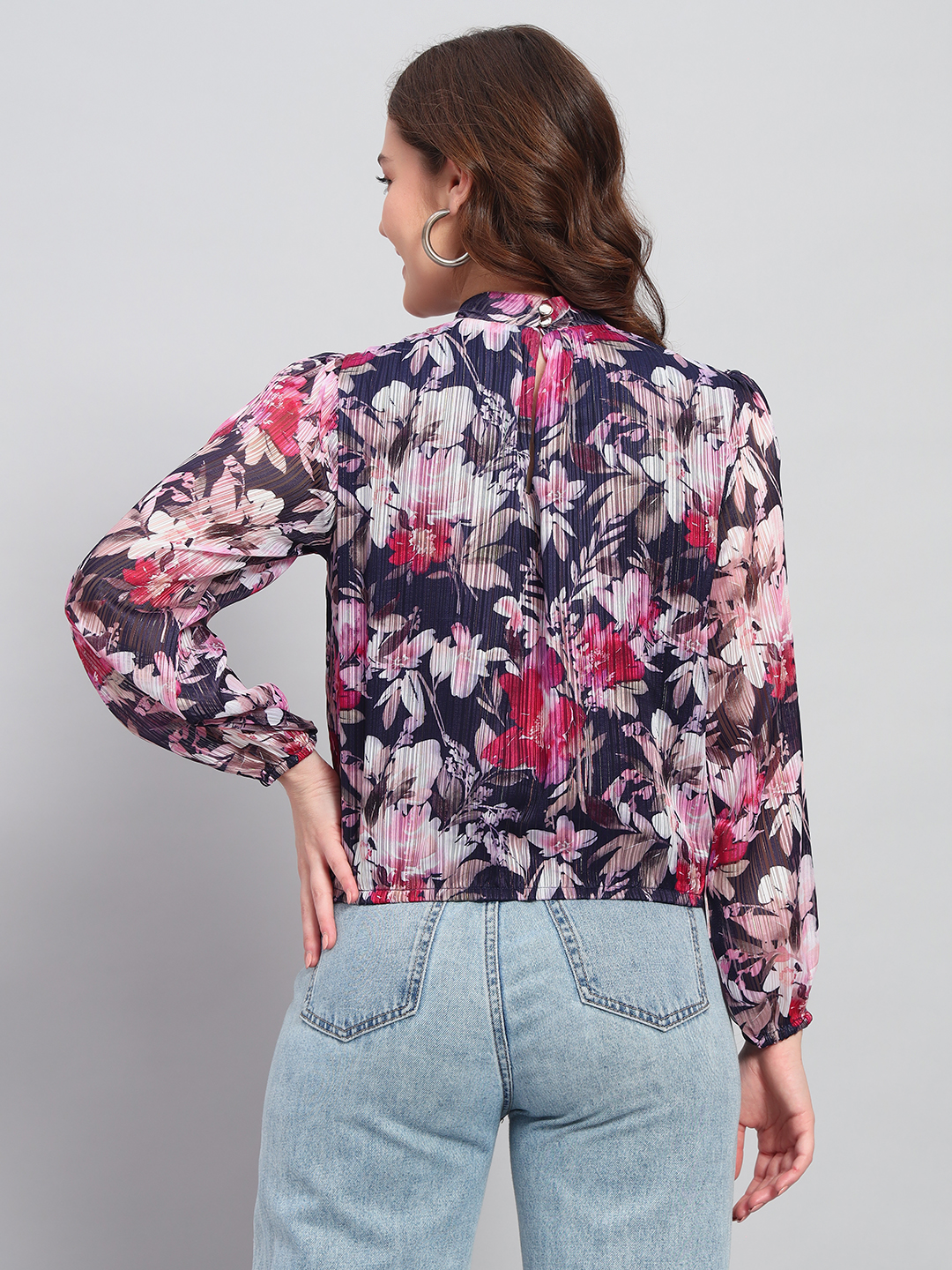 Be the first to review “Deewa Women Black Pastel Bloom Pleated Floral Blouse”
