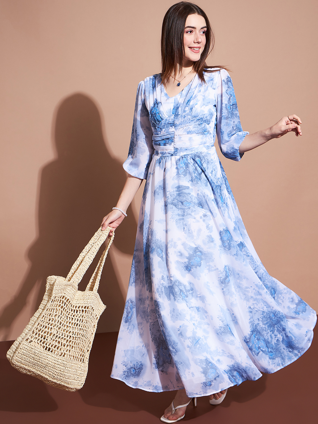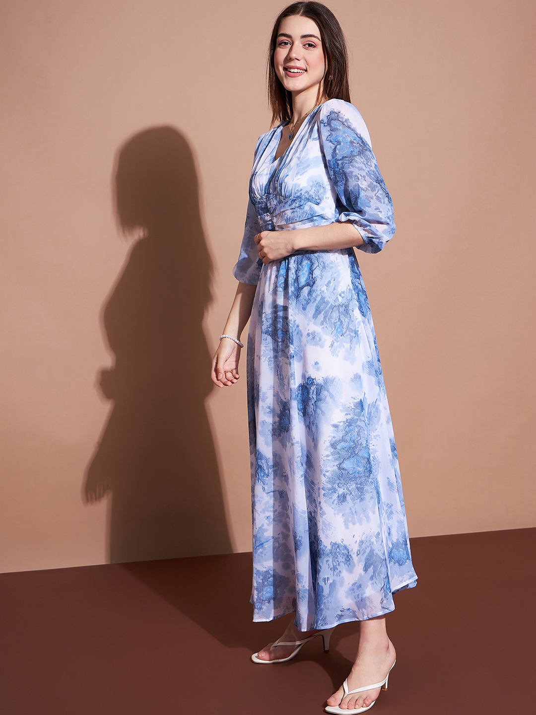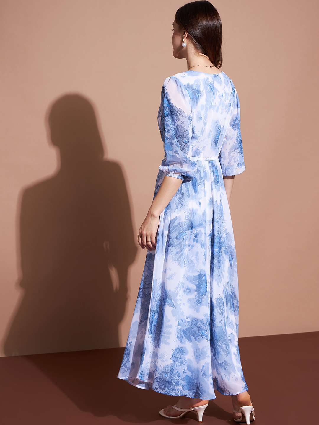 Embrace sophistication with this exquisite A-line floral maxi dress, designed for effortless grace. Featuring a flattering high neckline, long sleeves with delicate cuff details, and a cinched waist for a refined silhouette. The lightweight fabric flows beautifully, making it perfect for any occasion that calls for elegance and charm.