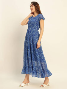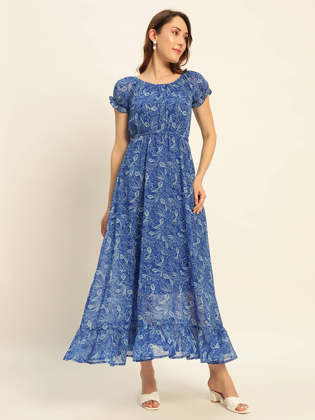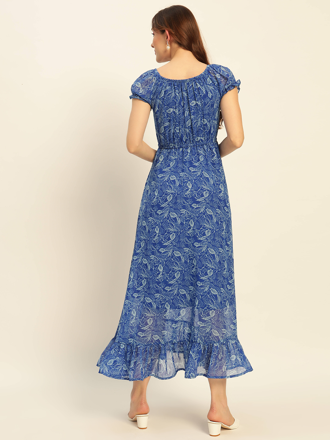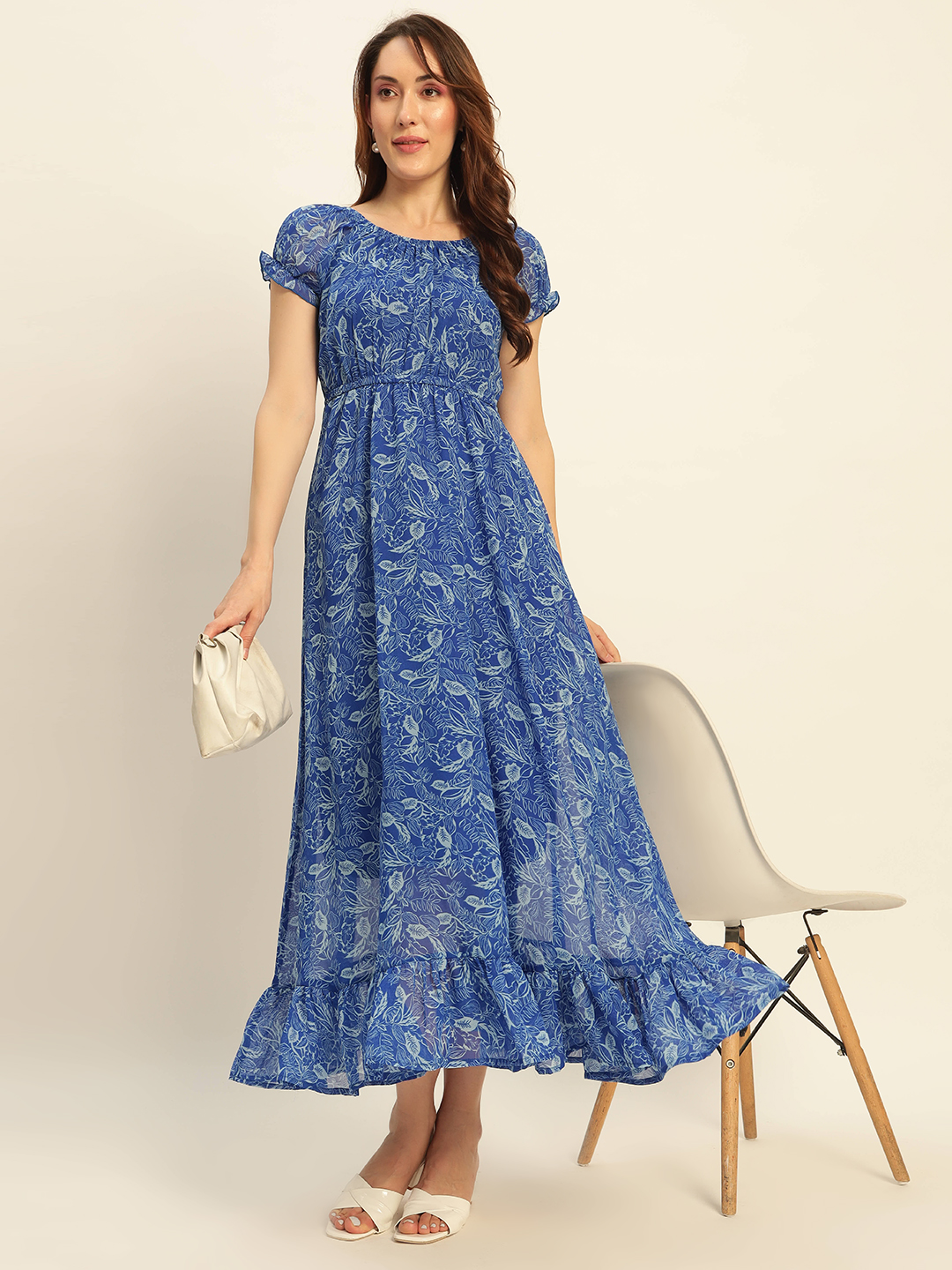 Embrace timeless charm with our Blue Floral Ruffle Hem Maxi Dress, designed to make every moment feel effortlessly graceful. This dress features a soothing blue hue adorned with delicate floral prints, short sleeves with ruffled edges, and a flattering round neckline. The flowing silhouette and ruffled hem add a touch of whimsy, making it perfect for warm-weather outings and relaxed elegance. Whether you’re strolling through a garden or sipping iced coffee at brunch, this dress brings comfort and style together in perfect harmony.