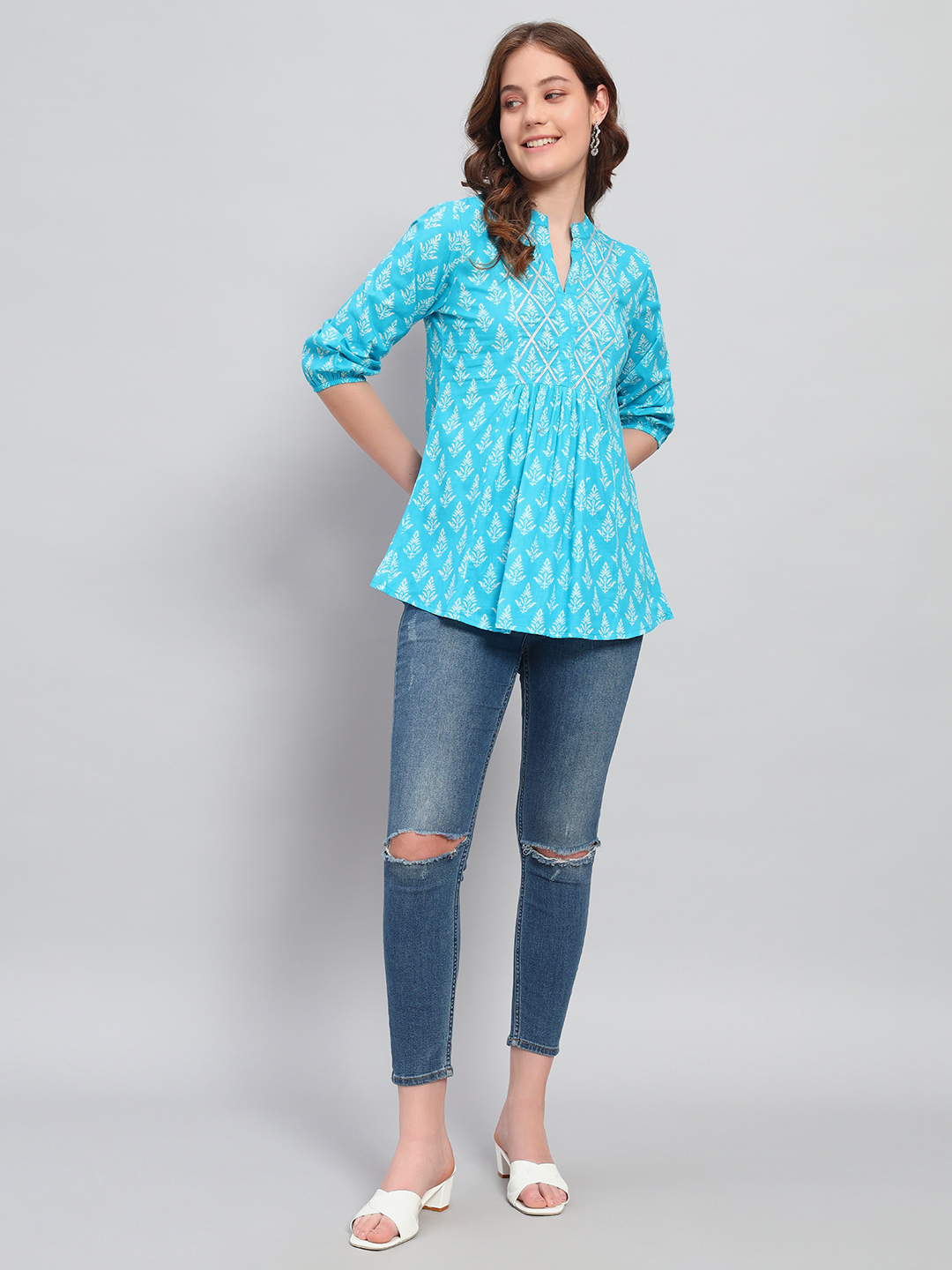 Pair it with skinny jeans, leggings, or even linen trousers for a breezy, laid-back look.