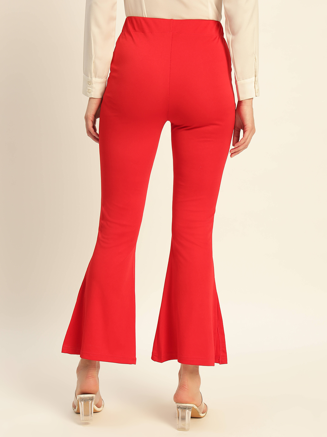 Deewa Women Bold Red High-Rise Flared Trousers for Women ❤️ | Power Statement Pants