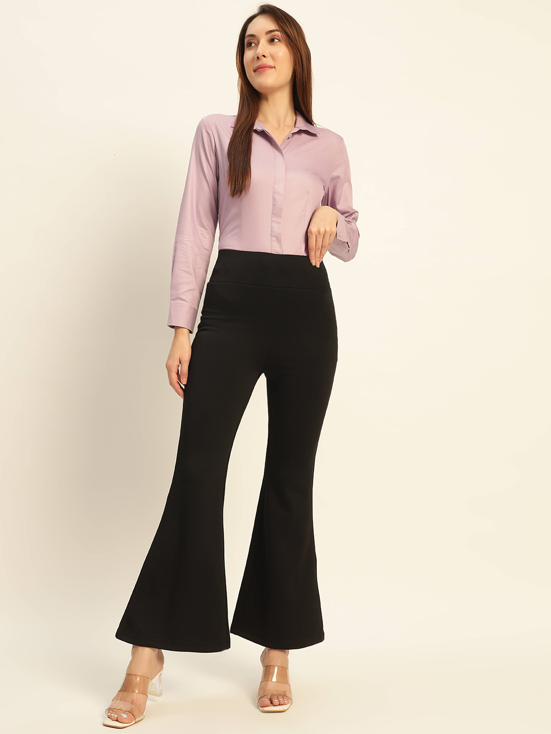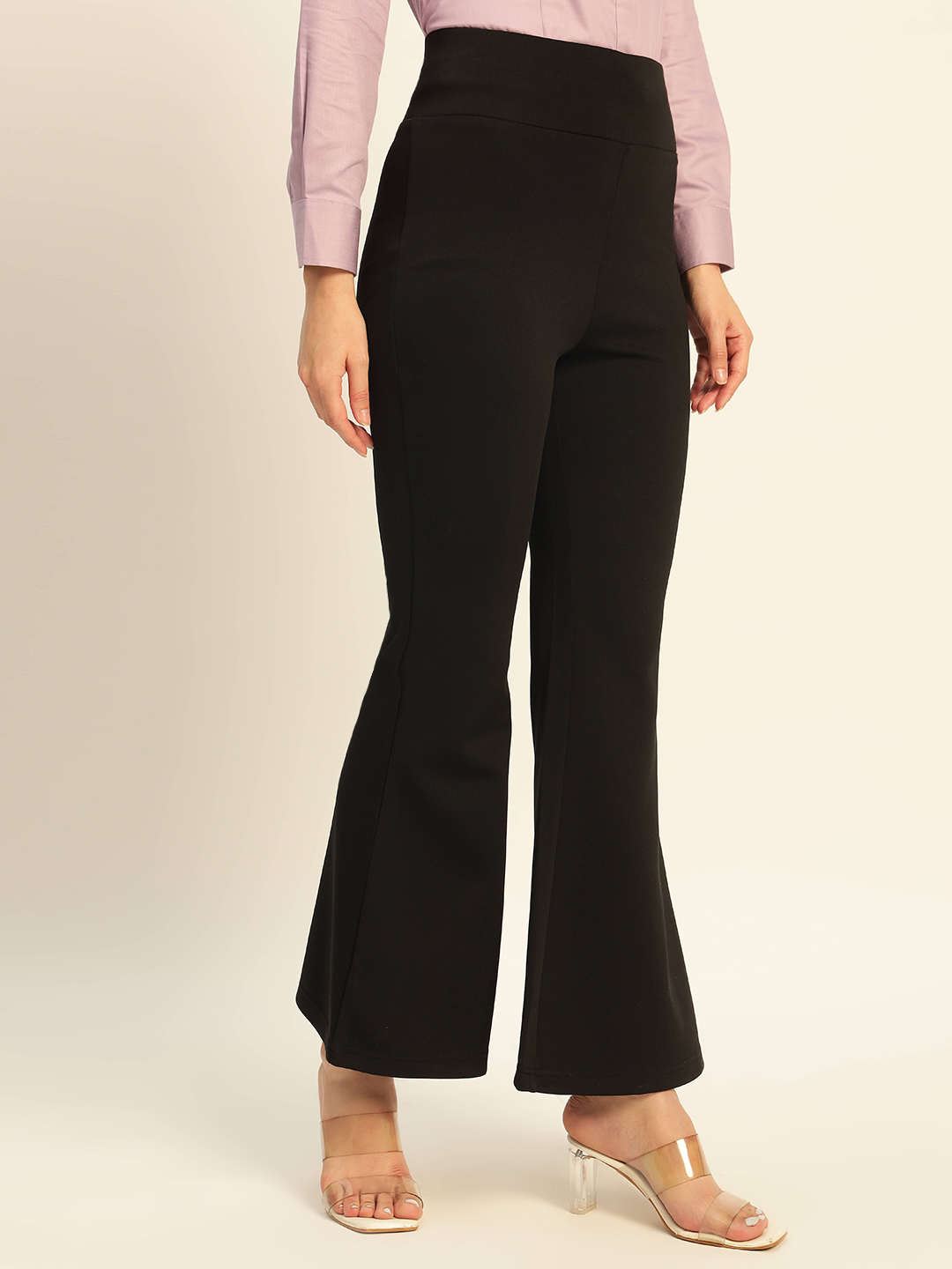 CompareTurn heads and own your confidence with these Classic Black Flared Trousers ✨. Designed to cinch at the waist and flare beautifully at the hem, these trousers offer a timeless silhouette with a modern twist. The ultra-soft stretchable fabric gives all-day comfort, while the clean, high-waisted fit makes your legs look longer and leaner 🔥. Whether it’s a formal meeting, a dinner date, or casual coffee runs – this piece will take you there in style 🖤.