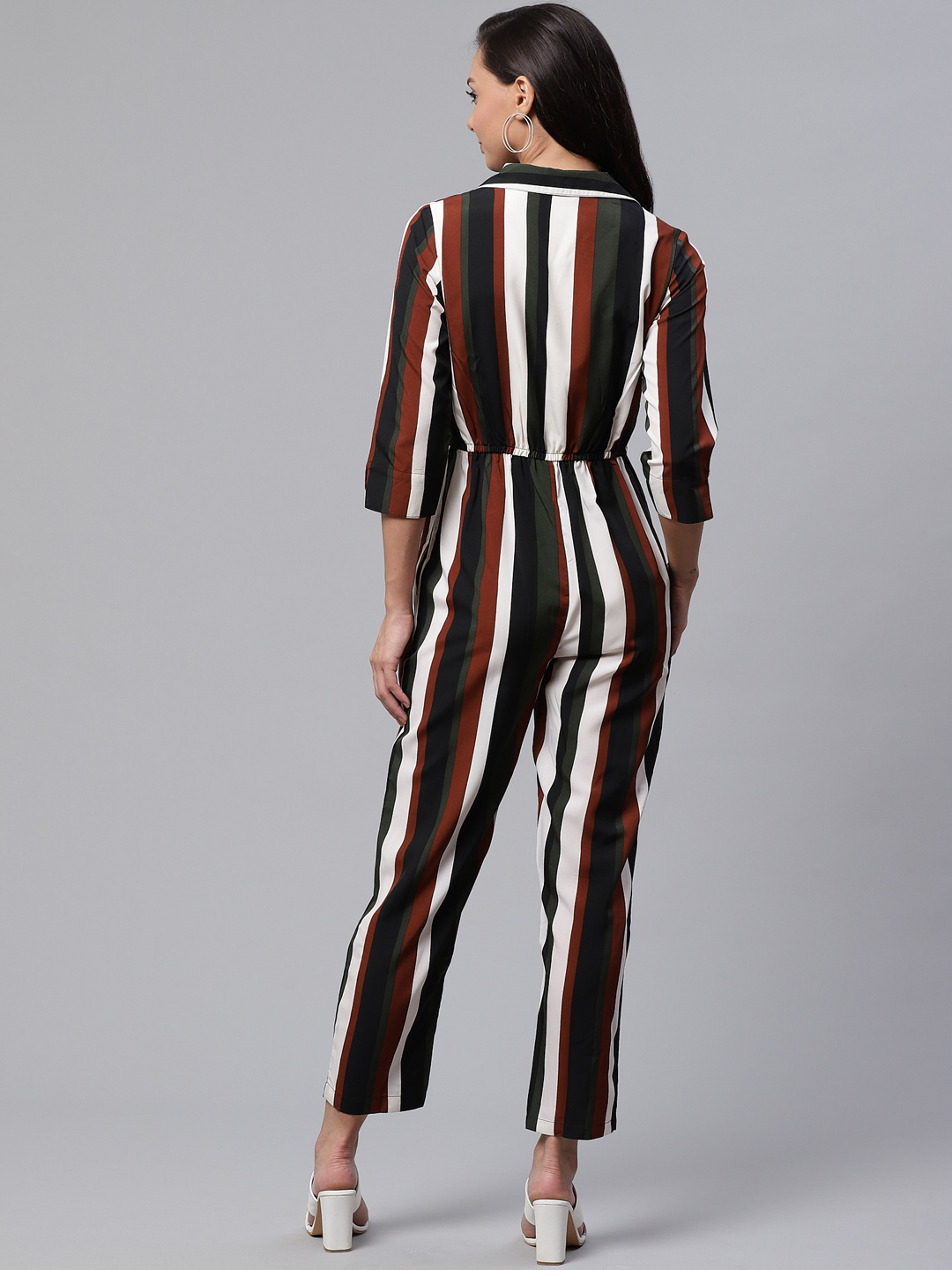Deewa Women Green and White Floral Cold Shoulder Jumpsuit