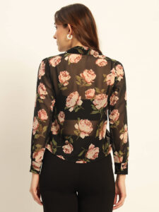 Be the first to review “Deewa Women Midnight Bloom Sheer Floral Blouse – Women’s Elegant Statement Shirt”