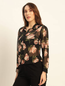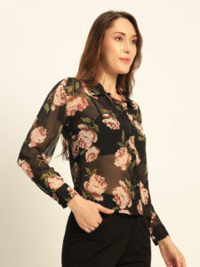 Deewa Women Midnight Bloom Sheer Floral Blouse – Women’s Elegant Statement Shirt