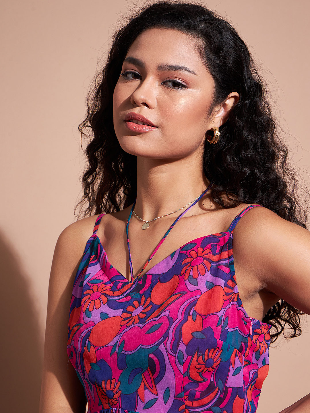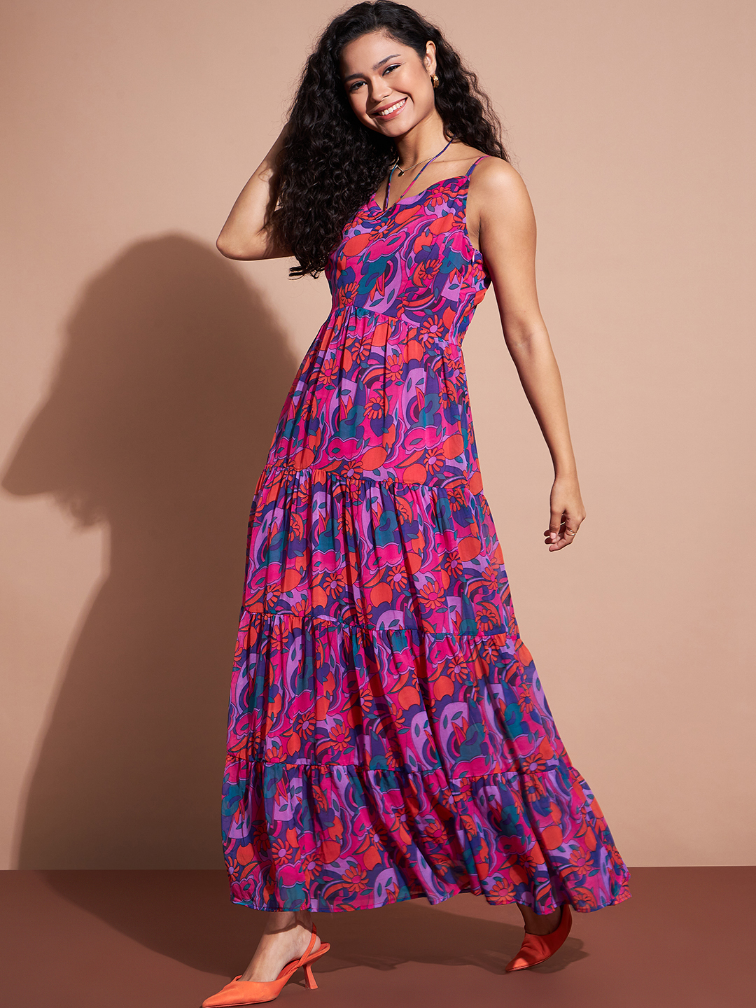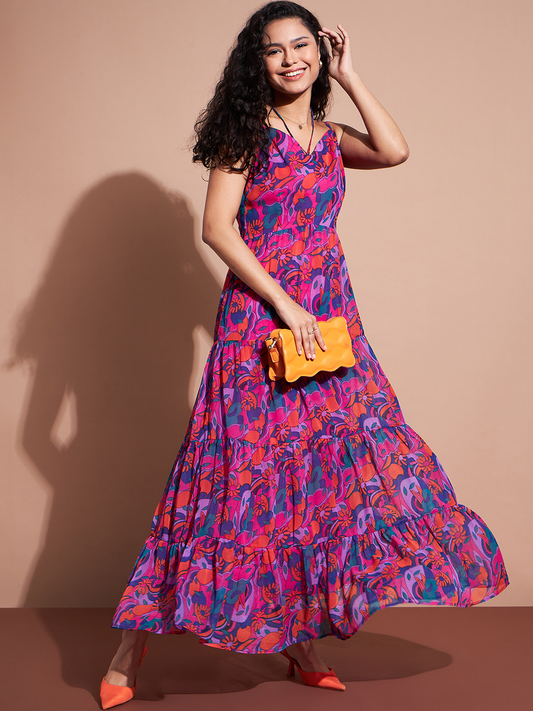 Step into effortless elegance with this vibrant Pink Floral Maxi Dress. Designed with a stunning pink and white floral print on a rich green background, this dress features a flattering V-neckline, sleeveless cut, and a gracefully tiered skirt that adds movement and charm. Perfect for warm-weather days, this dress effortlessly blends style and comfort, making it a go-to piece for casual and vacation looks.