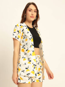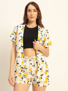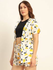 Be the first to review “Deewa Women Yellow Floral Printed Co-ord Set – Shirt & Shorts Combo for Women”