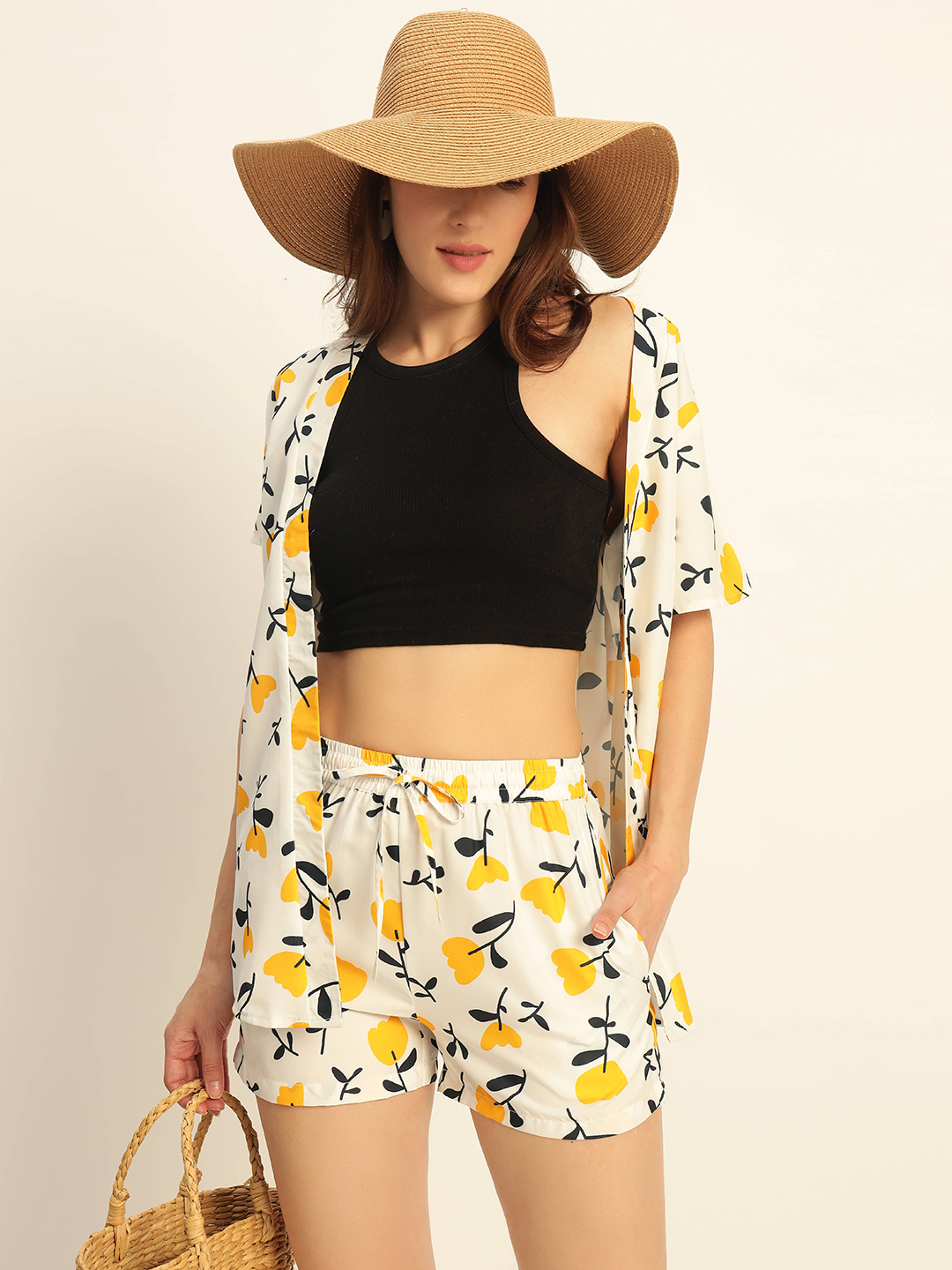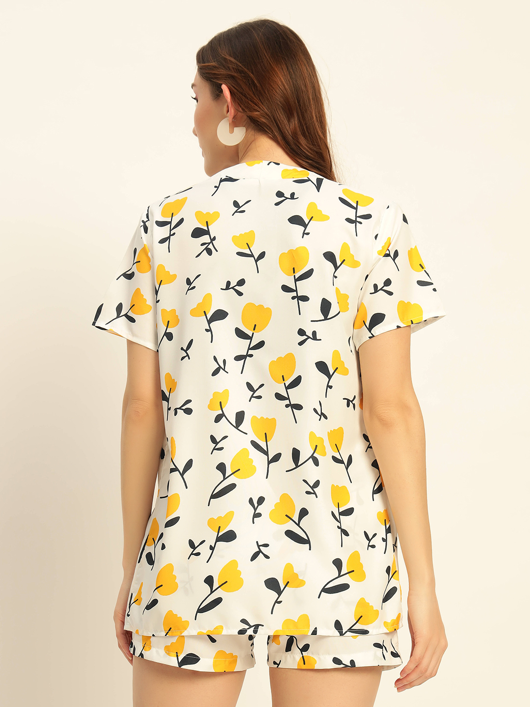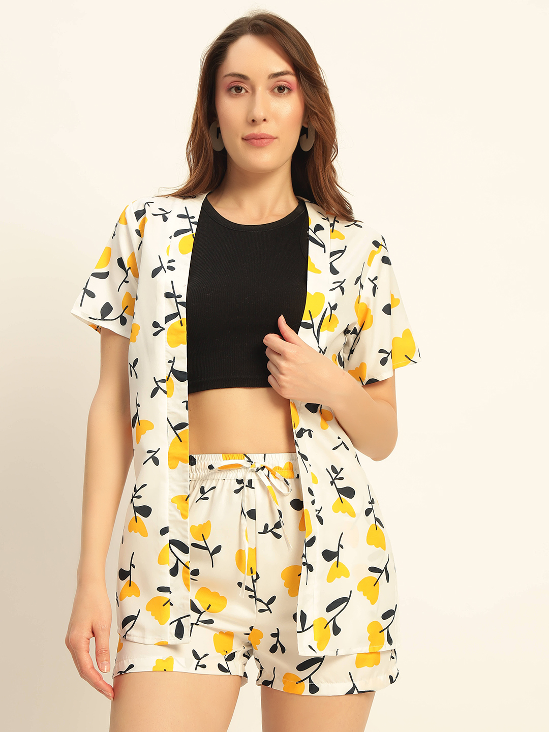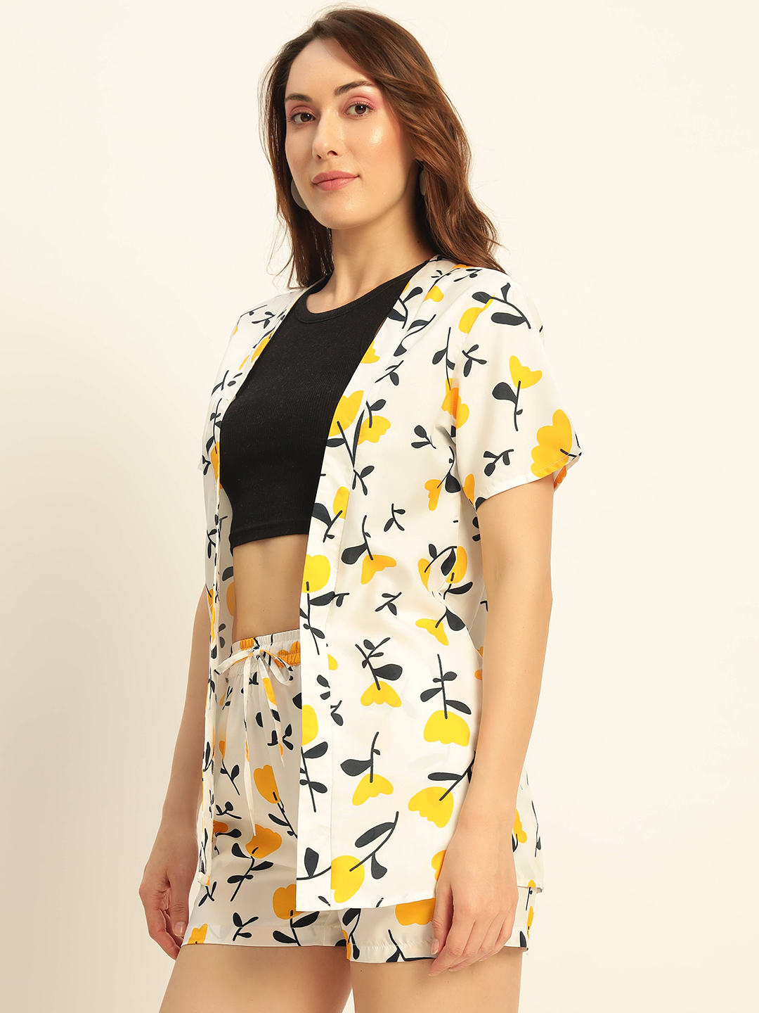 Deewa Women Yellow Floral Printed Co-ord Set – Shirt & Shorts Combo for Women